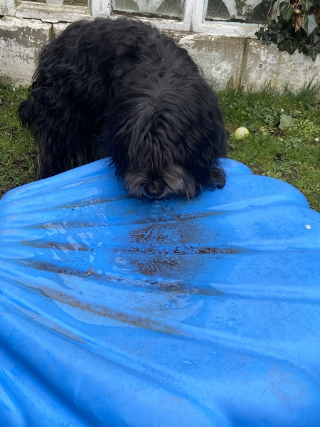 spielt mit einem 1 jährigen Nachbarshund und hat schon eine sehr schöne Bindung zu beiden aufgebaut.